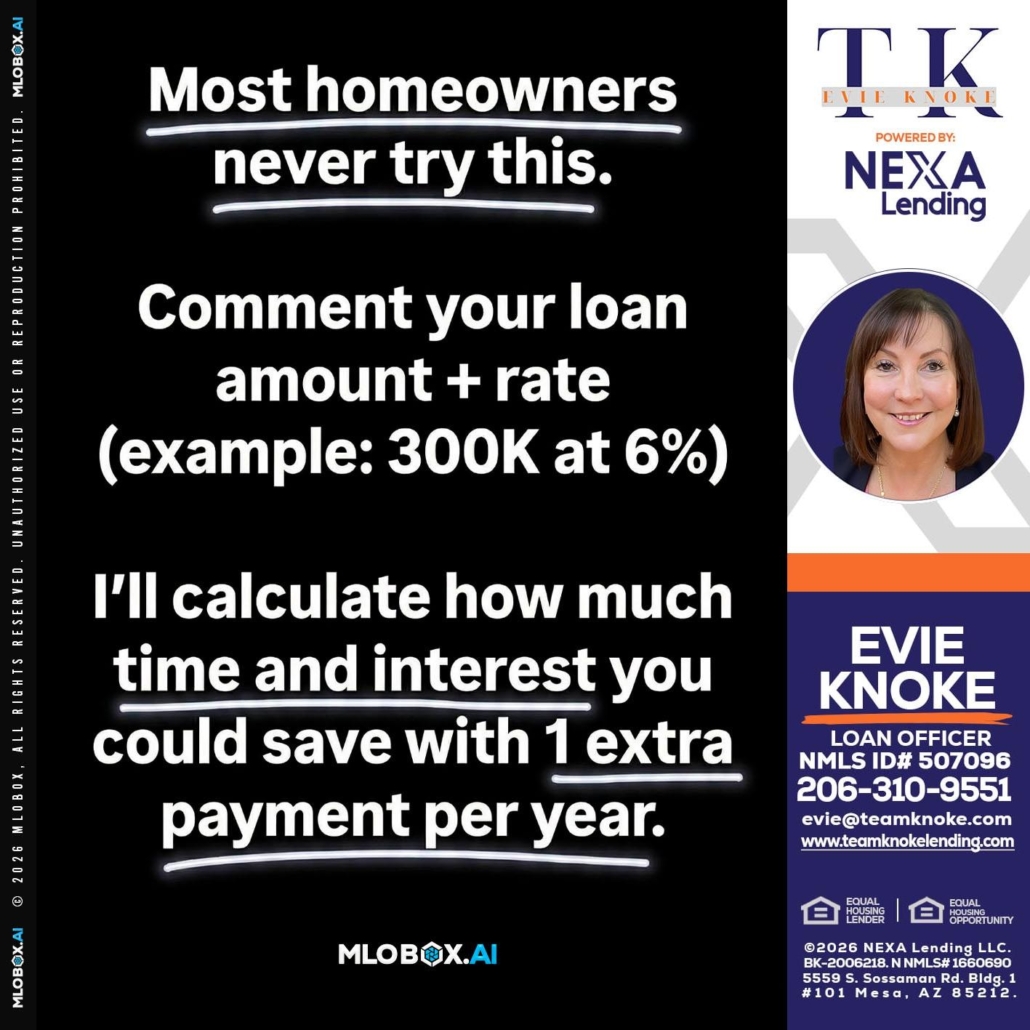 Hi, my name is Evie Knoke. I’m a Loan Officer with NEXA Lending LLC., offering personalized mortgage solutions, fast customized quotes, great rates and service with integrity.